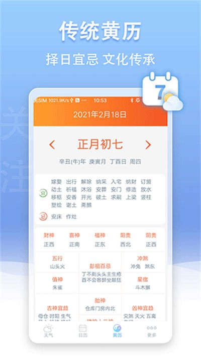 5、内置传统黄历功能,将天气与民俗数据结合,为日常安排提供多维度参考价值。
