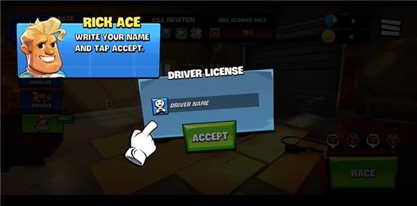 3、在主界面点击右下角“RACE”选项即可快速进入比赛模式,开始正式竞速挑战并体验游戏核心玩法内容。