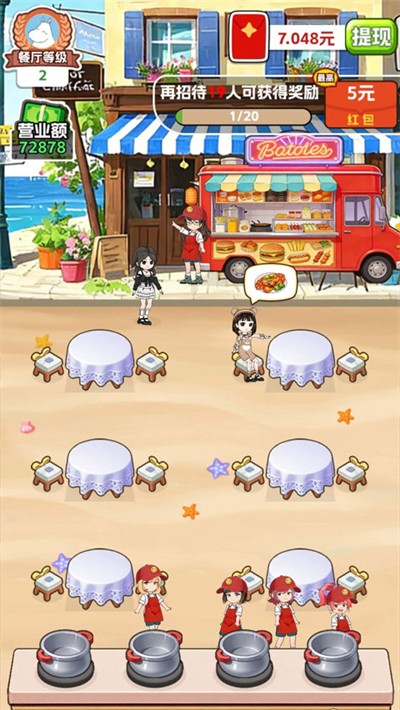 成功安装《欢乐美食街红包版》最新版本后,运行程序并完成登录,即可正式进入热闹十足的美食经营世界,踏上属于自己的餐饮创业道路。