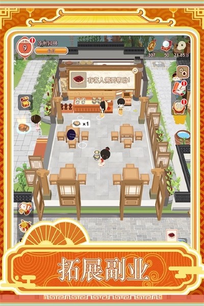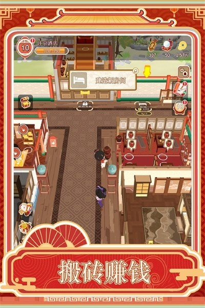 1、建设酒店区域解锁新关卡扩展经营内容。