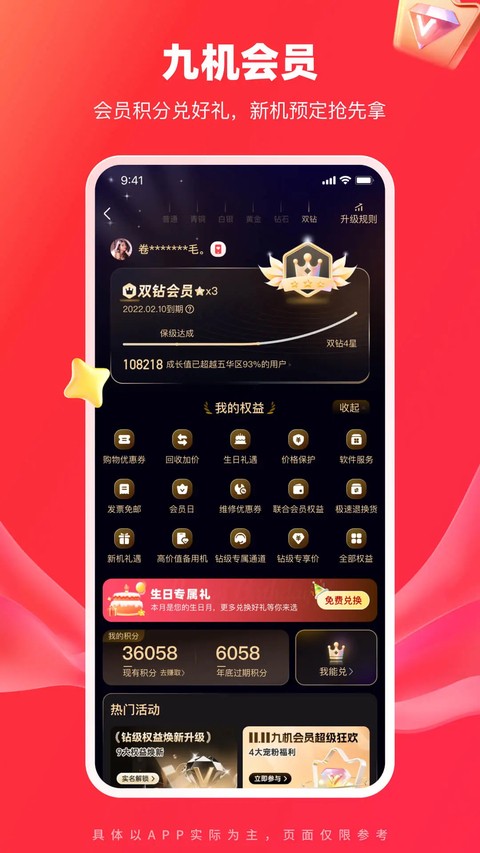 3,会员体系:提供专属会员成长体系,包含积分兑换、生日礼包、签到奖励与购物返利等多种权益,提升长期使用价值体验感。