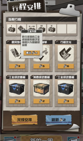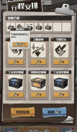 在周计划中选择“额外积分”和“工业升级”两项行程进行搭配组合,触发特殊状态效果。