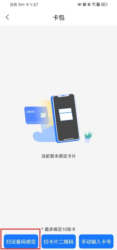 3、根据页面提示先扫描设备二维码,随后将实体卡放置在刷卡区域,即可完成基础绑定操作流程。
