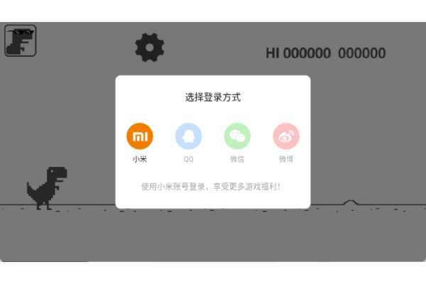 2、选择心仪的登录方式完成登录,登录后即可像在线游玩一样体验chromedino小恐龙游戏。