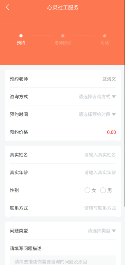 3、填写预约时间等相关信息并提交,即可完成预约并获得心理辅导服务。