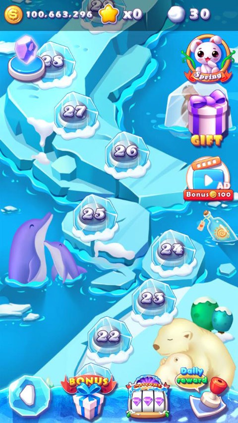 在玩法方面,游戏采用经典三消机制,通过滑动屏幕,将三个或以上相同颜色与形状的冰块进行排列,即可完成消除操作。每一关均设有明确目标与步数限制,需要在有限条件下合理规划消除顺序,以达成通关要求。随着关卡推进,难度逐步提升,障碍类型与布局更加多样,使挑战性不断增强。