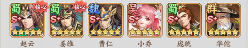 1、赵云+姜维+曹仁+小乔+庞统+华佗