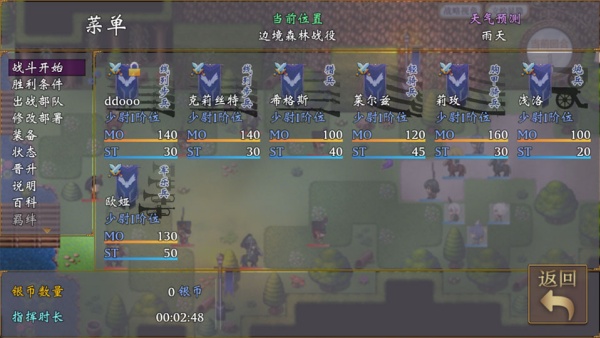 1、战场加入天气变化与地形效果,不同环境会影响单位能力表现,使战局具有更高不确定性与策略深度。