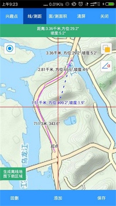 4.测量工具 支持测量距离、方位、面积、周长和坡度