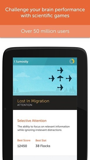 lumosity软件是在全球范围内超火的智力提升应用,沿用了领先的科学理论基础,运用多重的方式来进行训练,帮助用户提升记忆力,锻炼脑力,上千万人都在使用它。