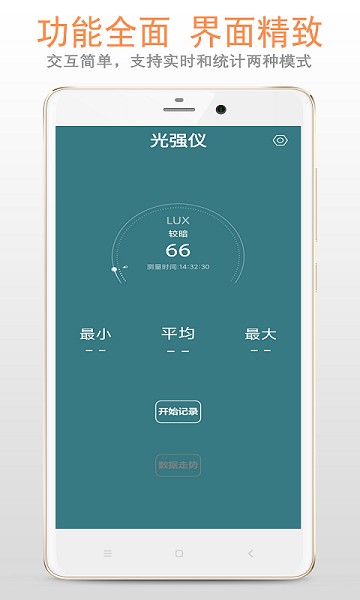 光强仪app能够记录每次的测试数据,最大、最小以及平均值都清楚的展示,可以快速的测出所处环境的光照强度,应用小巧易用,整体的交互也是非常不错的,大家都能轻松使用。