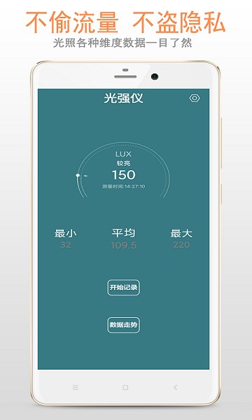 1.使用您的设备的光线传感器,将你的手机变成感光仪器,并数字化展示;