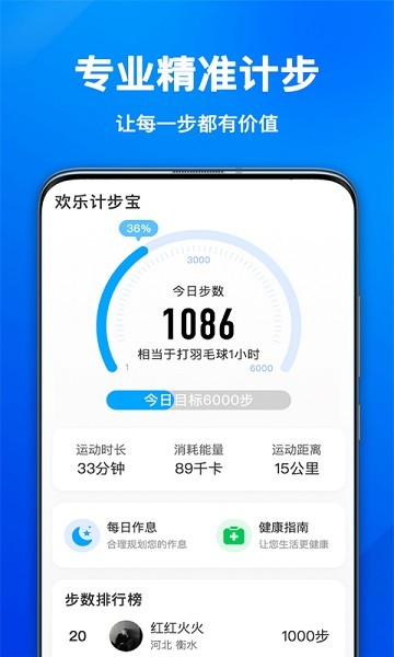 欢乐计步宝app能够精准地监测用户每天的步数,运动时长、消耗能量、运动距离等等清晰地看到,根据你的需求来设定不同的提醒,助你养成良好的生活习惯,开启健康的生活方式。