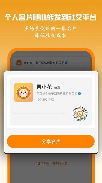 栗子名片最新版是一款提供电子名片使用的软件,汇聚多种交流方式,还有各种行业信息查询,更便捷的展示名片使用,为用户拓展人脉发展。