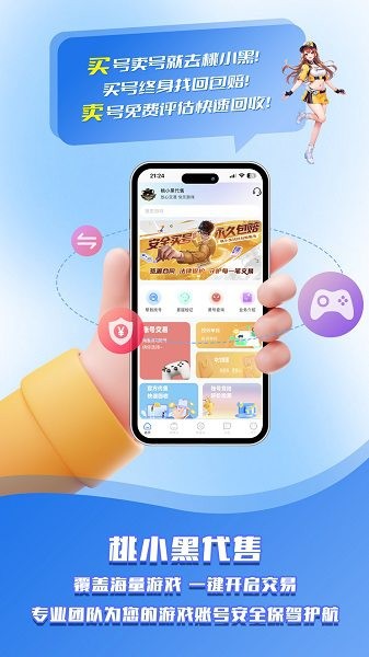 桃小黑代售手机版是一个专业的游戏代售交易软件,平台为大家提供了海联高德端游和手游游戏账号交易服务,支持一大家快速与平台沟通进行代售,有着终身包赔的优质保障,无论是买号还是卖号都放心。
