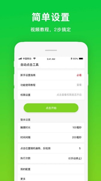 自动点击工具app能够帮助用户设置手机自动点击操作,设置时间,点击频率,间隔点击时间。操作简单,软件适用多种场合,为用户带来极大的方便。需要的用户赶紧看看吧!