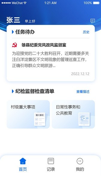 平台秉持简单、有效、便捷特色,以接收通知、承接上级任务、行使”三员“监督权力为主要功能。