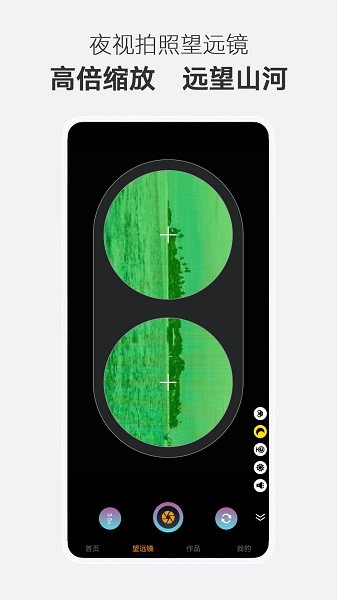 夜视拍照望远镜是一款强大的夜视拍照望远镜应用,专为那些热爱探索夜晚美丽景色的用户设计。无论您是观赏星空、观鸟或者探险,这款应用都能帮助您捕捉清晰、令人惊叹的夜间景色。超越视野,发现无限可能。