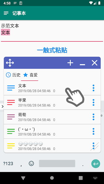 3.根据时间排列到屏幕上,用户可以快速找到想要使用的文本。