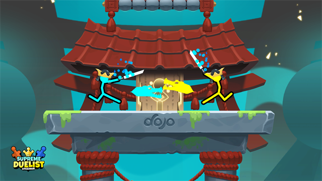 2、在对战中,使用摇杆操控火柴人移动,攻击敌方火柴人造成伤害。