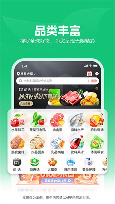 覆盖生鲜、食品、日用品等海量商品,品类丰富齐全,满足日常生活一站式采购需求。