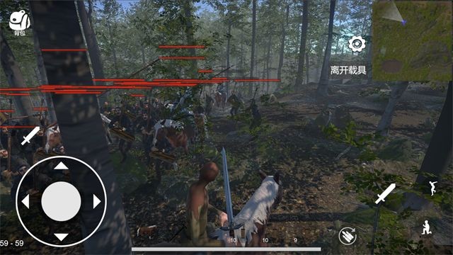 2、切换近战武器,与土匪近身搏斗,挥砍攻击敌人,清理周围的土匪单位,保护自身安全。