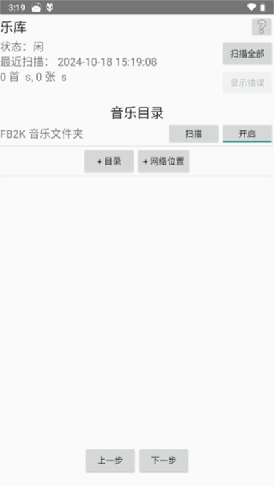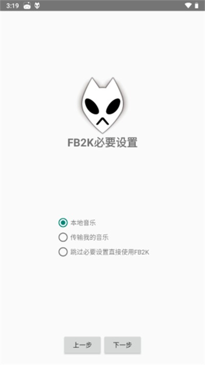 2、打开必要设置页,选中本地音乐选项,点击下一步进入乐库配置界面。