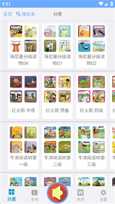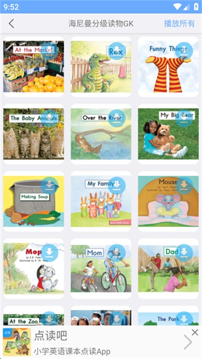 1、打开有声英语绘本,点击海尼曼分级读物GK,进入对应绘本列表。