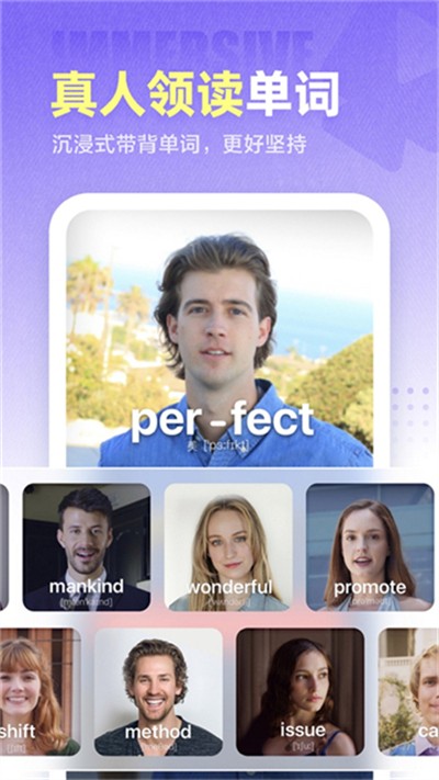好莱坞演员分段领读单词口型,配合实景场景呈现,搭配专业例句,在真实语境中理解词义与发音规则。