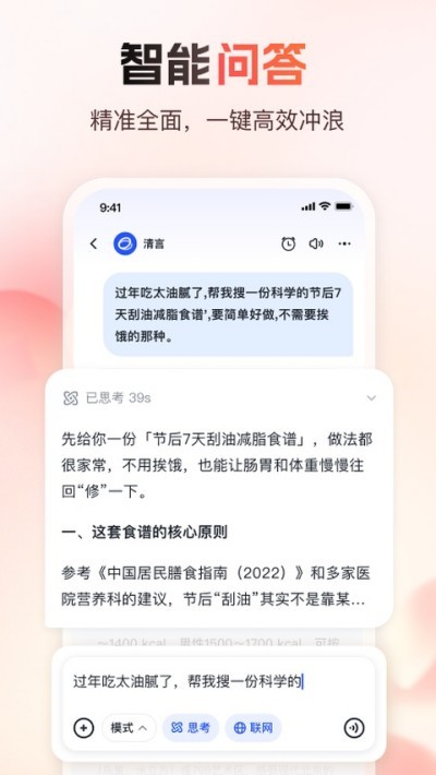 智谱清言是一款全能型智能助手,支持多轮连贯对话,可解答疑问、创作内容、生成代码、模拟互动,软件适用场景广泛,从日常咨询到专业创作、学习辅助均可胜任,是工作、学习与生活中的智能好帮手。