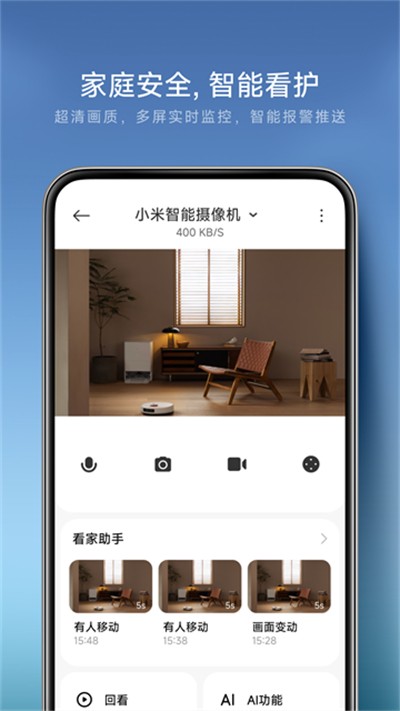 米家是一款专业的智能家庭摄像头控制,支持用户随时随地远程查看实时监控画面,具备双向语音通话功能,可实现手机与摄像头端语音交流,适用于家庭防护、店铺看护等多种场景,兼顾安全与便利,拥有丰富的情景模式,支持自定义智能看家助手,可分时段、分角度设定看护区域,全方位记录家中动态,视频内容可随时回看留存,既是贴心的生活陪伴,也是可靠的私人智能看护管家。