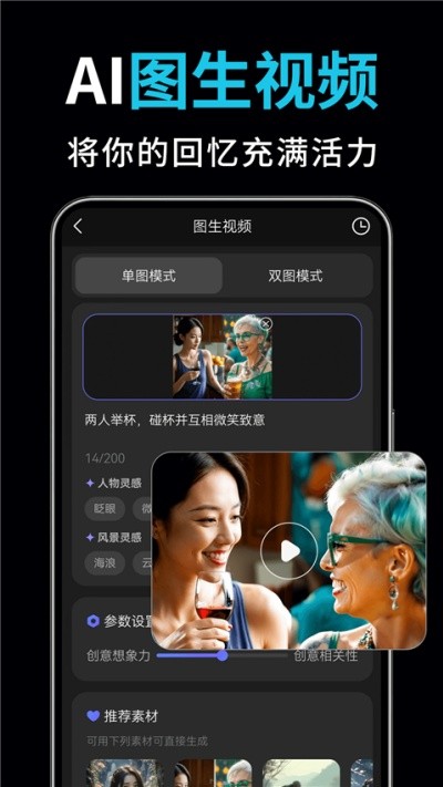 2、视频创作方面一句话生成完整故事短剧,上传照片可制作对口型视频与照片跳舞效果。