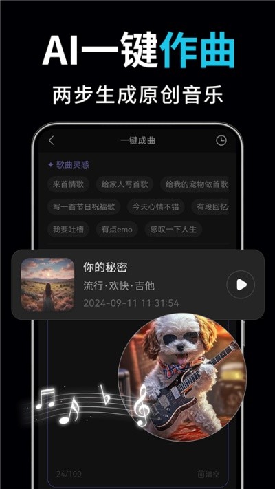 3、支持一键创作原创歌曲,汇聚海量精品素材与灵感推荐覆盖生活娱乐场景。