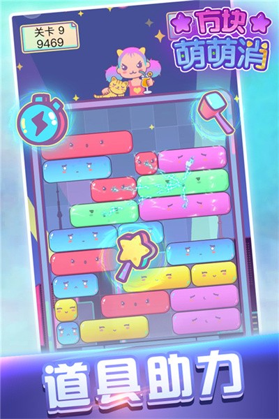 方块萌萌消是一款消除游戏。玩法围绕水平移动方块展开,填满整行就能瞬间清除。每一次移动都会导致方块随机上升,直到无法继续移动为止。过程中可以使用多种道具帮助自己化解危机。这款游戏非常考验玩家的空间规划能力。提供普通模式与冰雪模式两种选择,根据喜好自由切换游玩。系统会显示你的最高分数,点击分数还能直接挑战自己当前的记录。