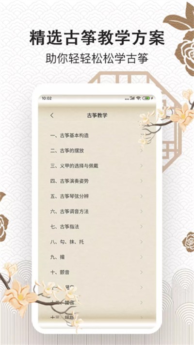2、整合专业古筝教学内容,由浅入深讲解弹奏技巧与乐理知识。课程体系完整,零基础用户也能逐步掌握基础指法与演奏逻辑。
