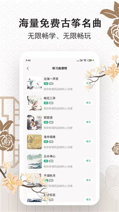 4、进入欣赏界面,可聆听经典古筝曲目,感受音乐韵律,辅助学习与练习。