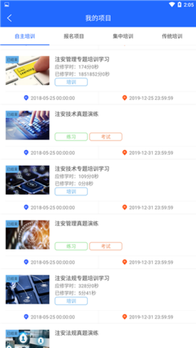 2、学员进入课程列表后选择对应培训内容进行学习,完成视频播放并参与配套测验任务。