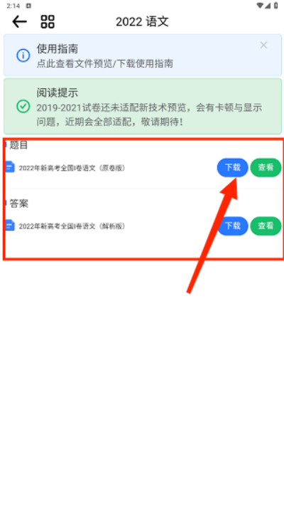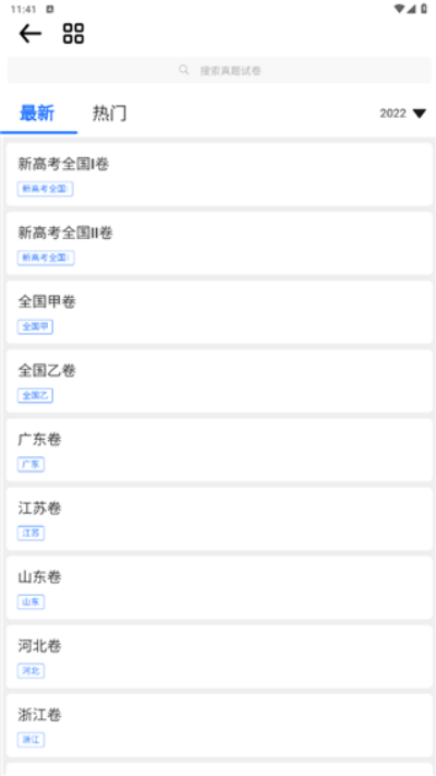 3、根据需求选择对应年份与试卷类型,即可进入试题查看与练习页面。