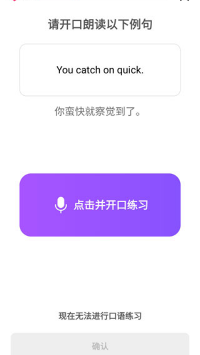 4、进入口语训练阶段后点击录音按钮进行跟读,系统根据发音与语调进行自动评估反馈。