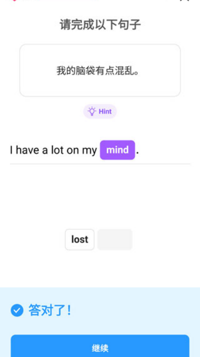 3、进入听力练习环节后系统播放多个英文句子,需集中记忆内容并点击“继续”进入下一步。