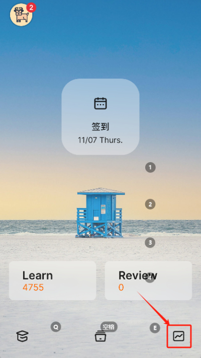 1、打开不背单词app后,在主界面右下角找到并点击仪表盘图标进入管理页面。