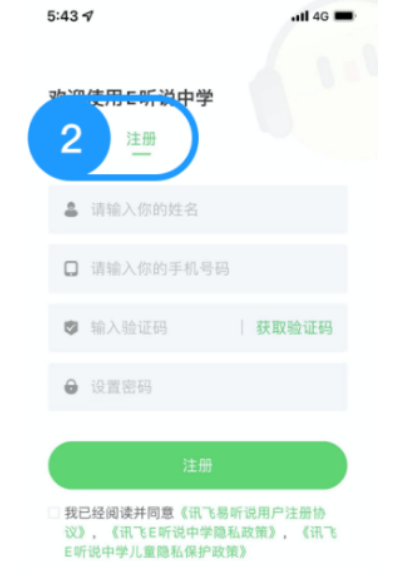 1、下载安装e听说中学app,打开后用手机号完成注册。
