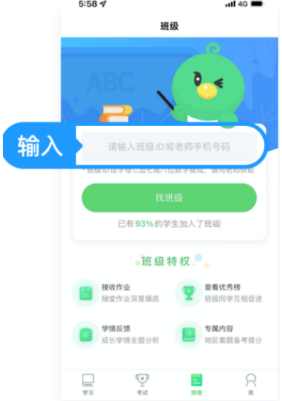 2、注册成功自动登录,点击底部班级输入相关信息加入。