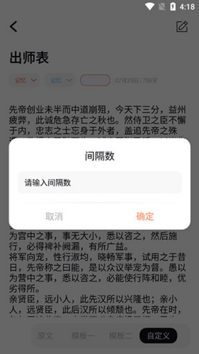 3、用户可根据自身需求,自主调整内容隐藏的间隔设置,实现个性化练习效果。