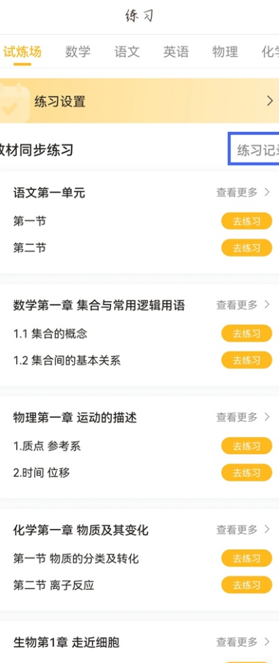 2、在练习页面中找到并点击【练习记录】选项,进入历史练习数据与完成情况记录查看界面。