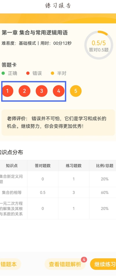 4、在报告页面中即可查看本次测试的错题内容,并进行针对性复习与知识巩固学习。