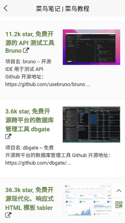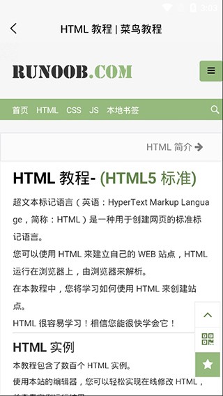 1、学习教程:打开菜鸟教程app后即可浏览各类编程教程内容,根据需求选择对应课程进入学习页面。