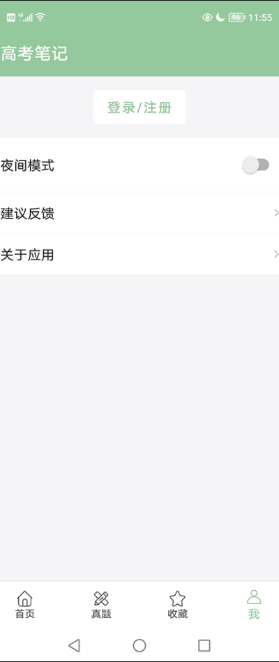 1、打开高考笔记应用后进入“我的”页面,在功能区域中找到并点击“登录/注册”入口进入账号管理界面。
