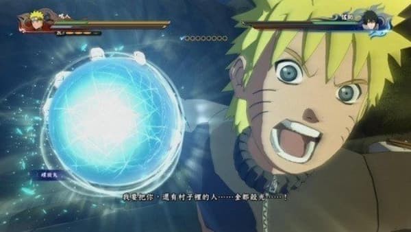 4、在连招中不断积攒宝贵的查克拉能量,待蓝色条槽蓄满后,即可释放华丽震撼的全屏大招。