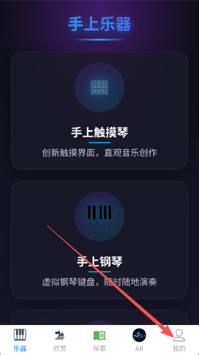 1、打开奏乐app后进入主界面,在右下角找到并点击“我的”入口进入个人页面。